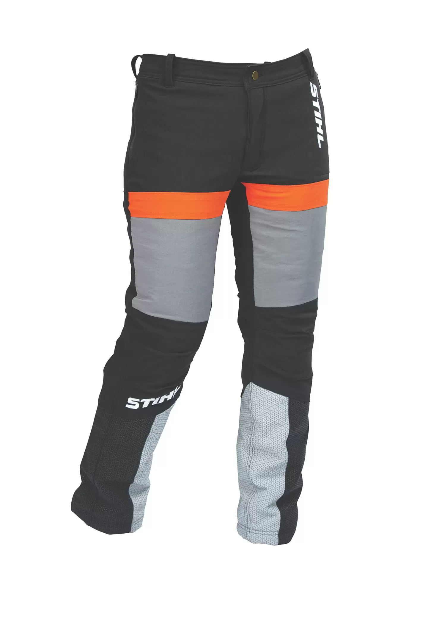 Flexible and comfortable protective pants designed for arborists and professional chainsaw users.