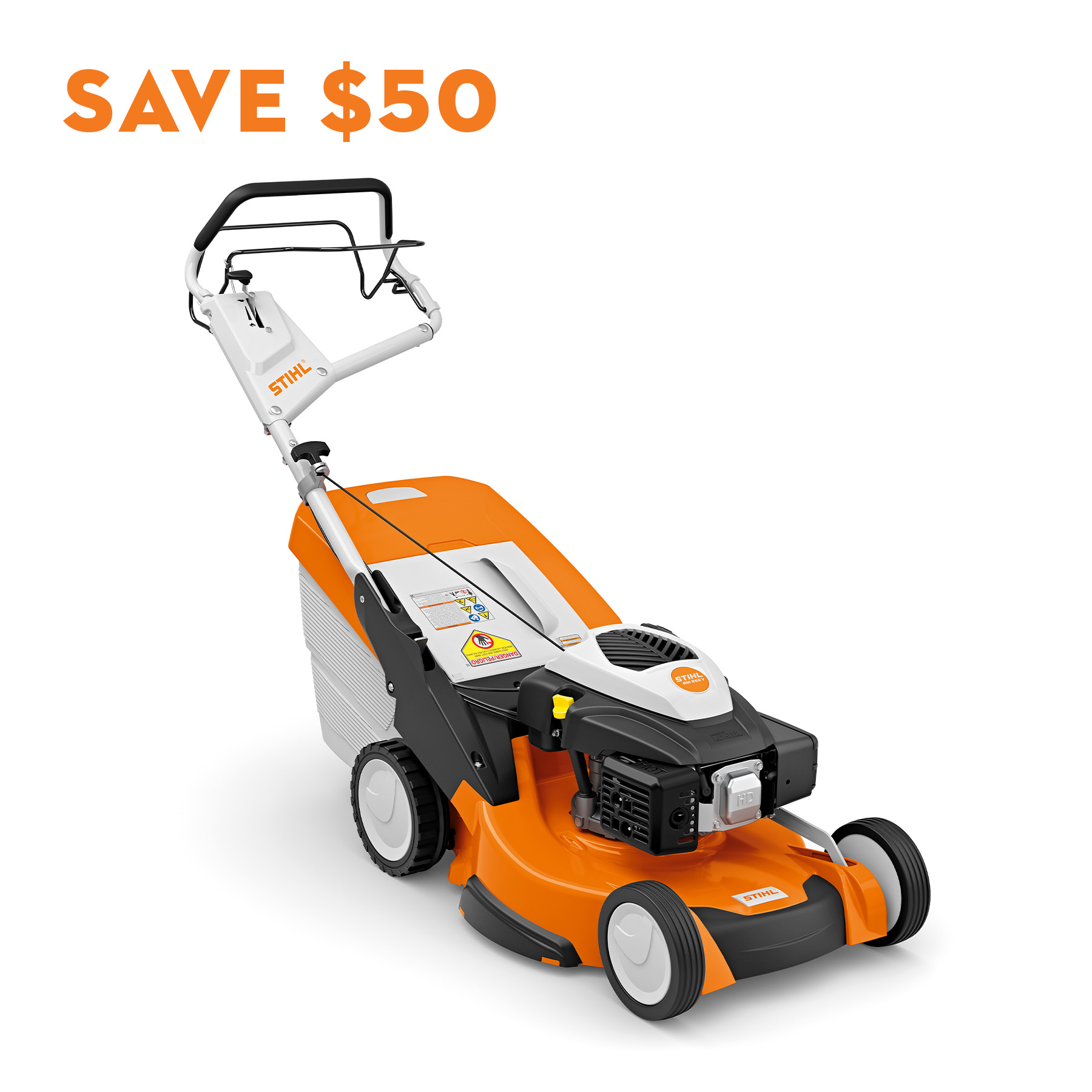 Enjoy powerful performance and convenience with the RM 655 V with mono-comfort handlebar, polymer grass bag, and variable-speed self-propel.