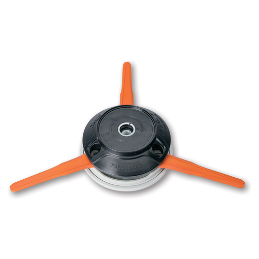 The STIHL PolyCut™ is a multi- purpose cutting tool with three thermoplastic blades. Some models can also be fitted with flexible nylon line. It is ideal for lawn trimming or cutting close to walls and fences, around trees or between shrubs. The nylon line is particularly suitable for low grass. The thermoplastic blades can be used for mowing high-growing grass. See chart for a STIHL PolyCut™ that fits your trimmer. Click here to view Cutting Heads & Blades Selection Chart